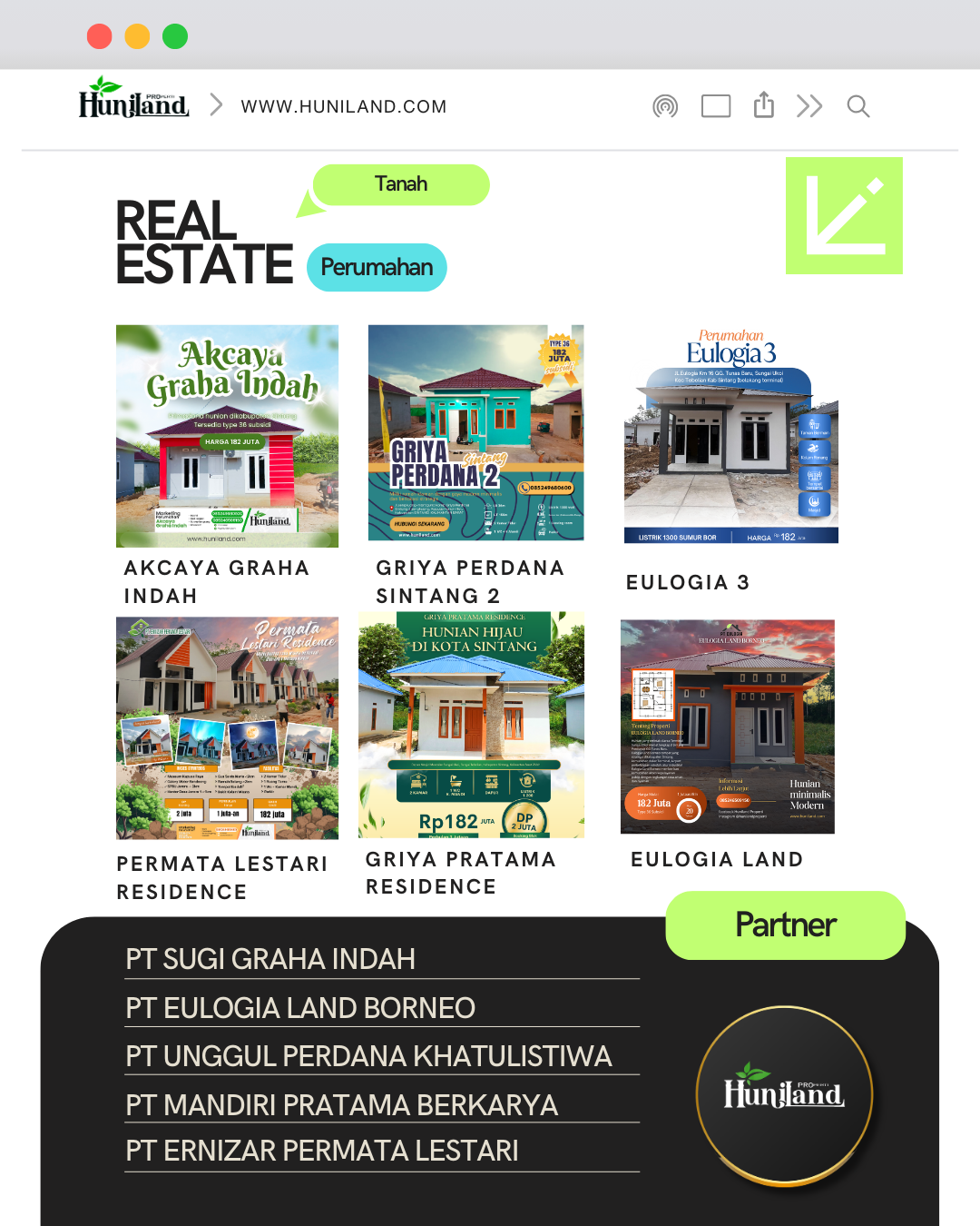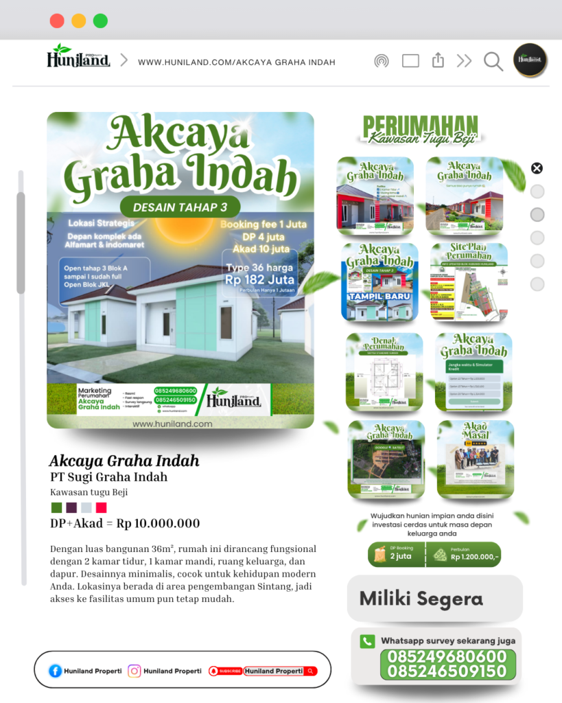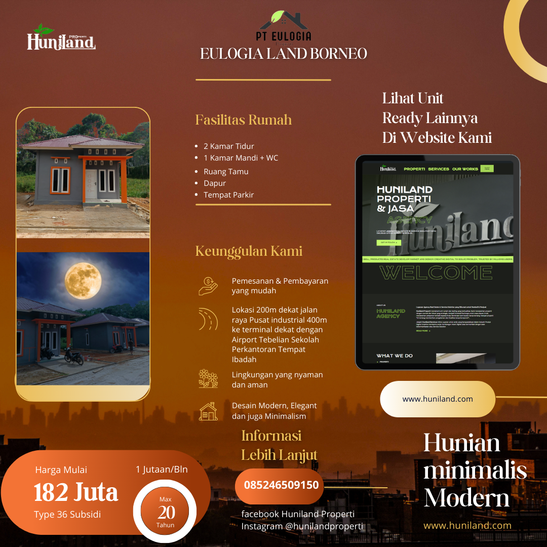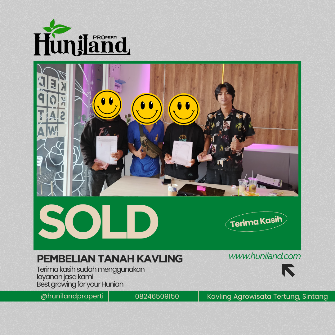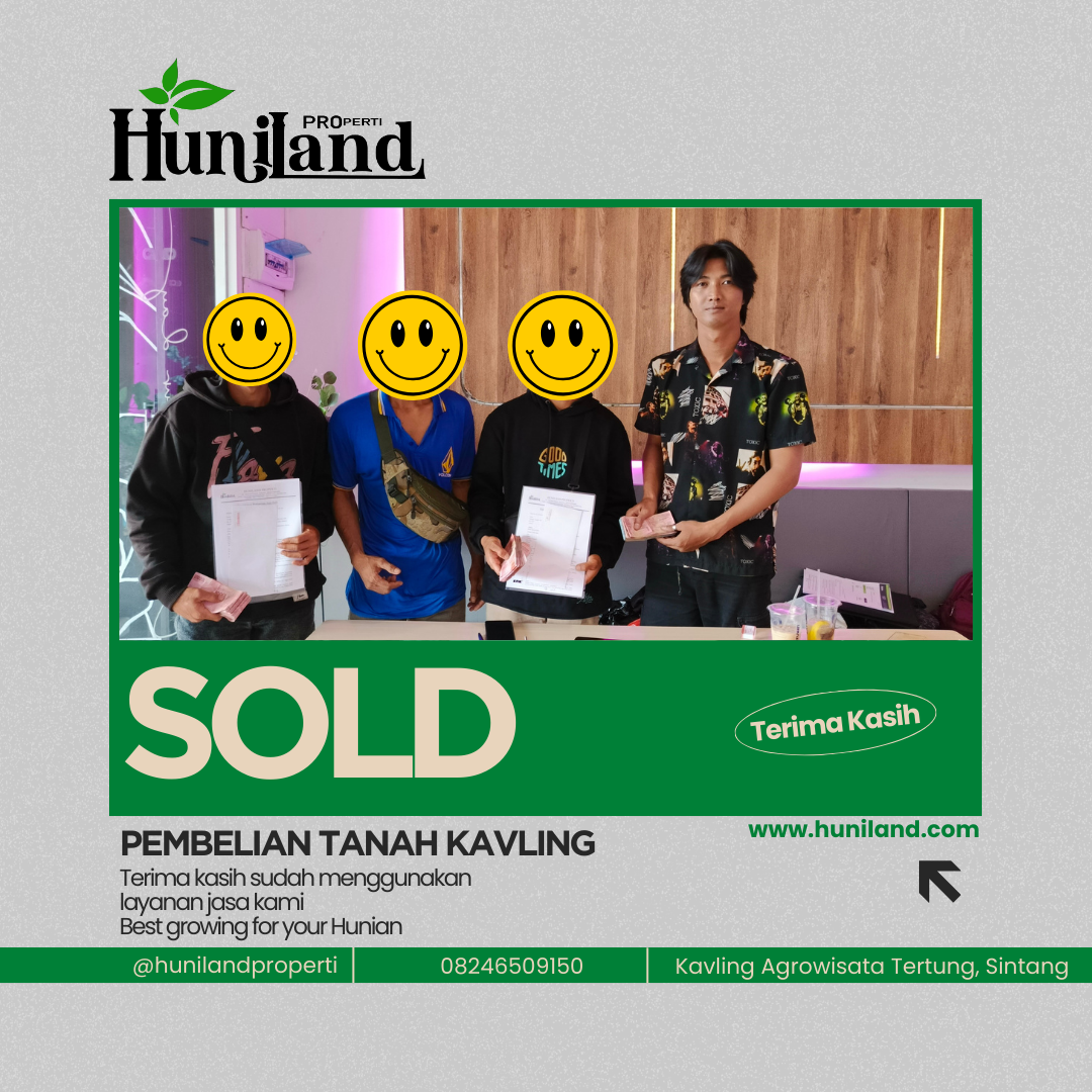 Huniland Properti memahami arti rumah dan kavling yang berkualitas. Kami menawarkan properti dengan cermat dan lokasi yang strategis, menjadi investasi berharga untuk masa depan Anda, menawarkan pelayanan terbaik kepada Anda. Kemitraan kami bukan hanya tentang menjual properti “ini tentang memberikan pengalaman dan Kwalitas tanpa kompromi”..,