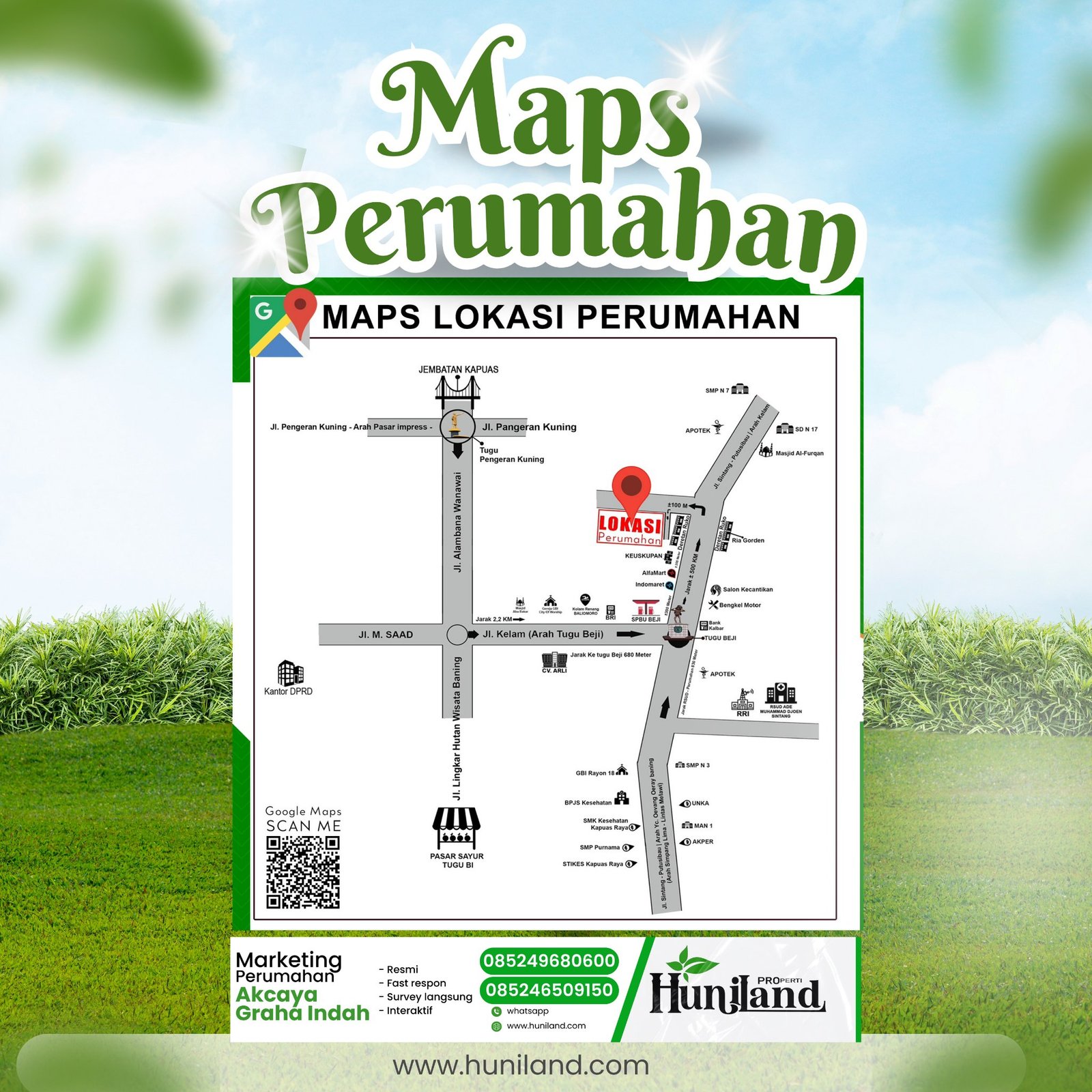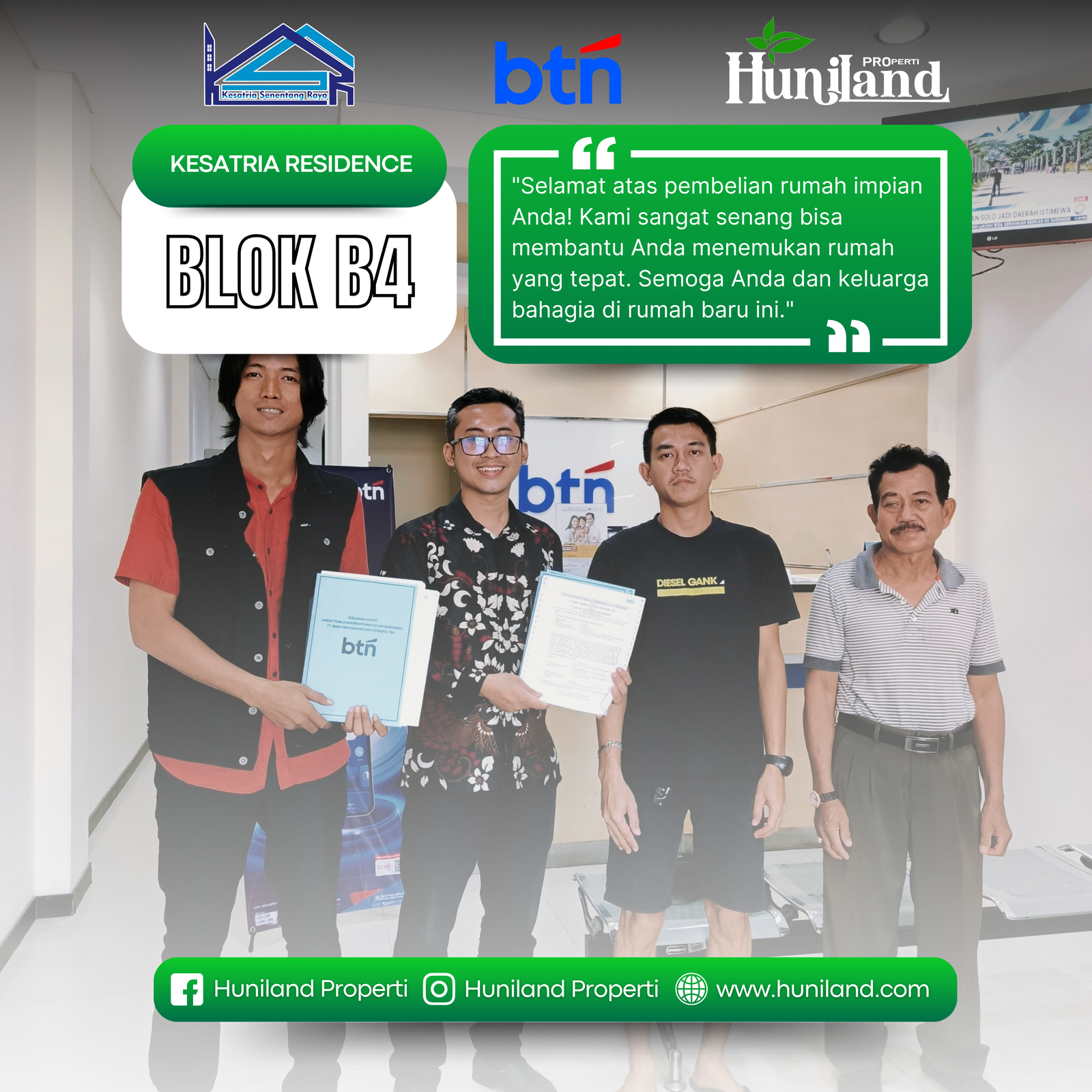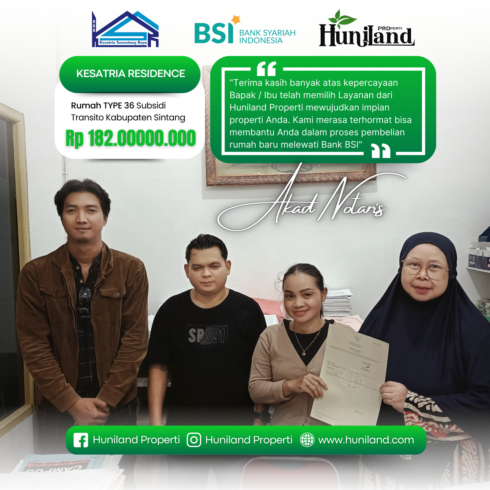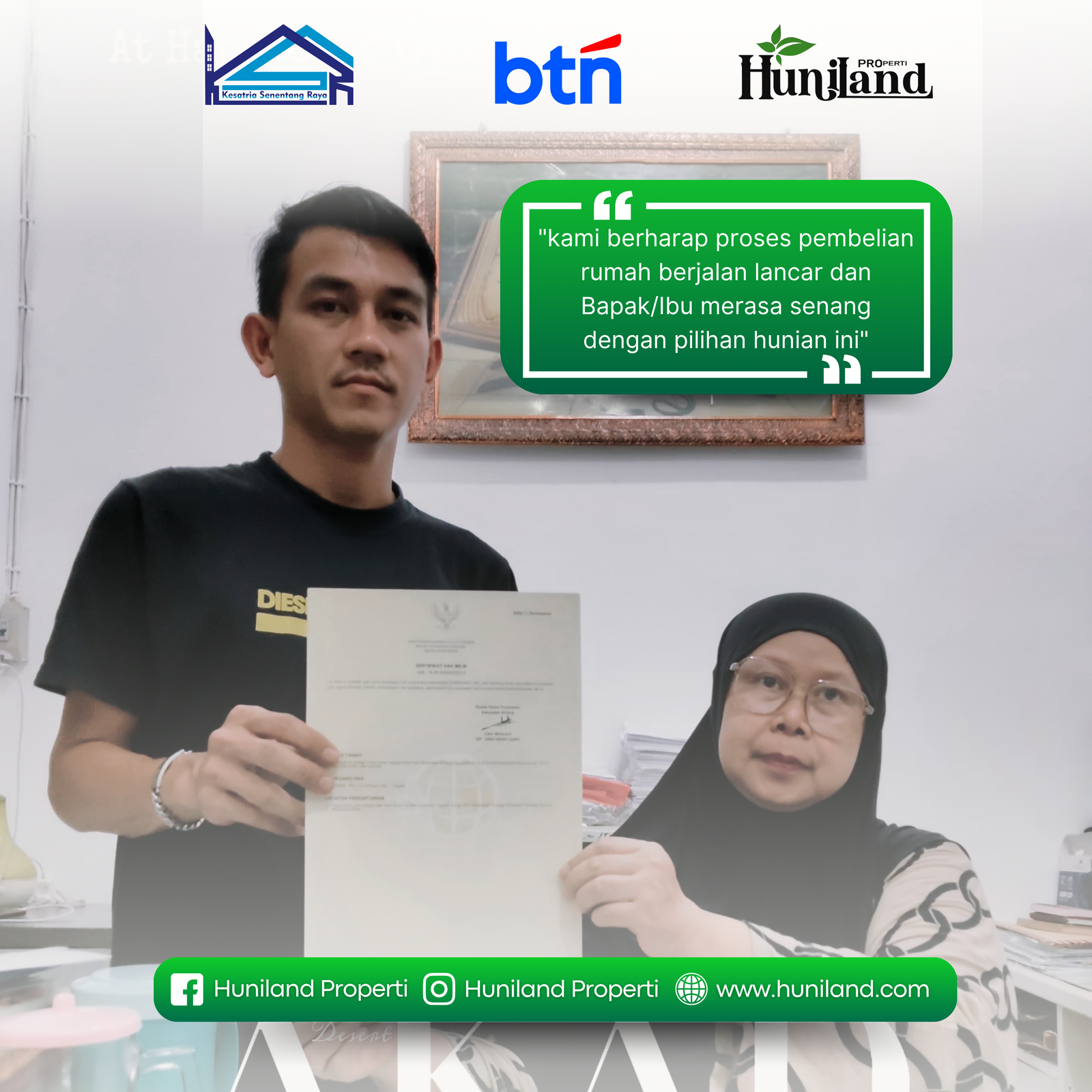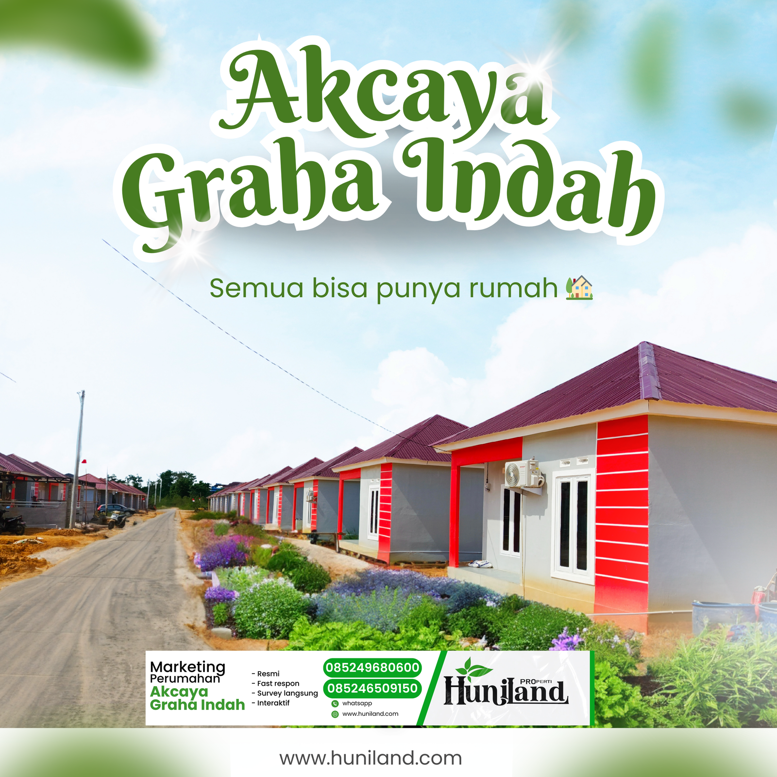 Huniland Properti memahami arti rumah dan kavling yang berkualitas. Kami menawarkan properti dengan cermat dan lokasi yang strategis, menjadi investasi berharga untuk masa depan Anda, menawarkan pelayanan terbaik kepada Anda. Kemitraan kami bukan hanya tentang menjual properti “ini tentang memberikan pengalaman dan Kwalitas tanpa kompromi”..,