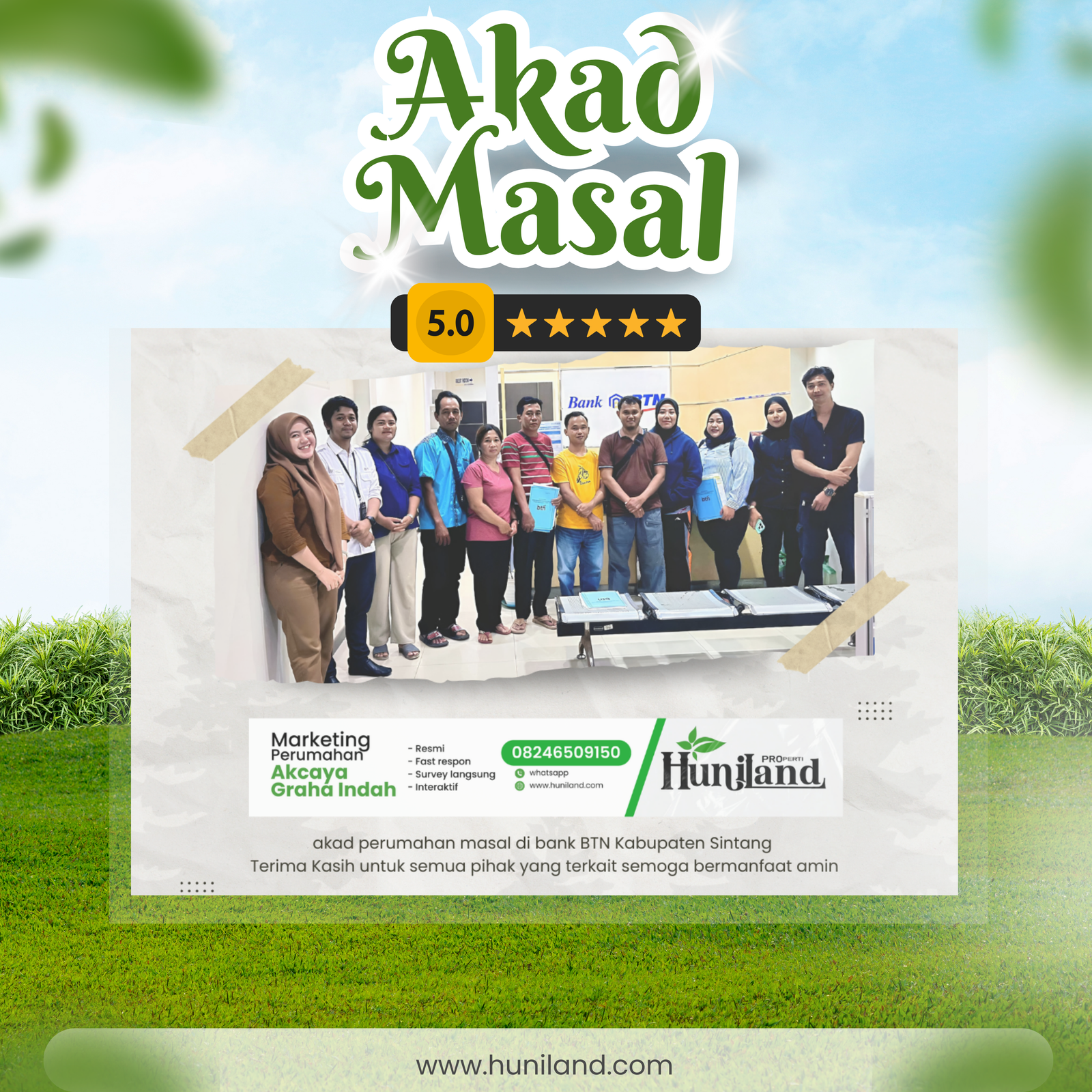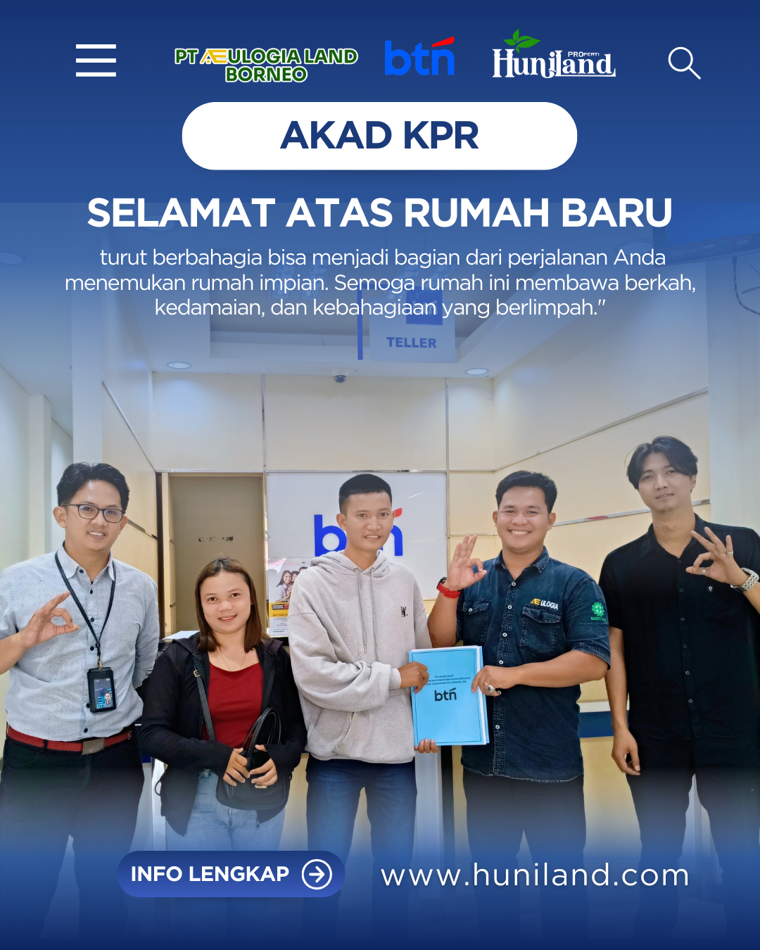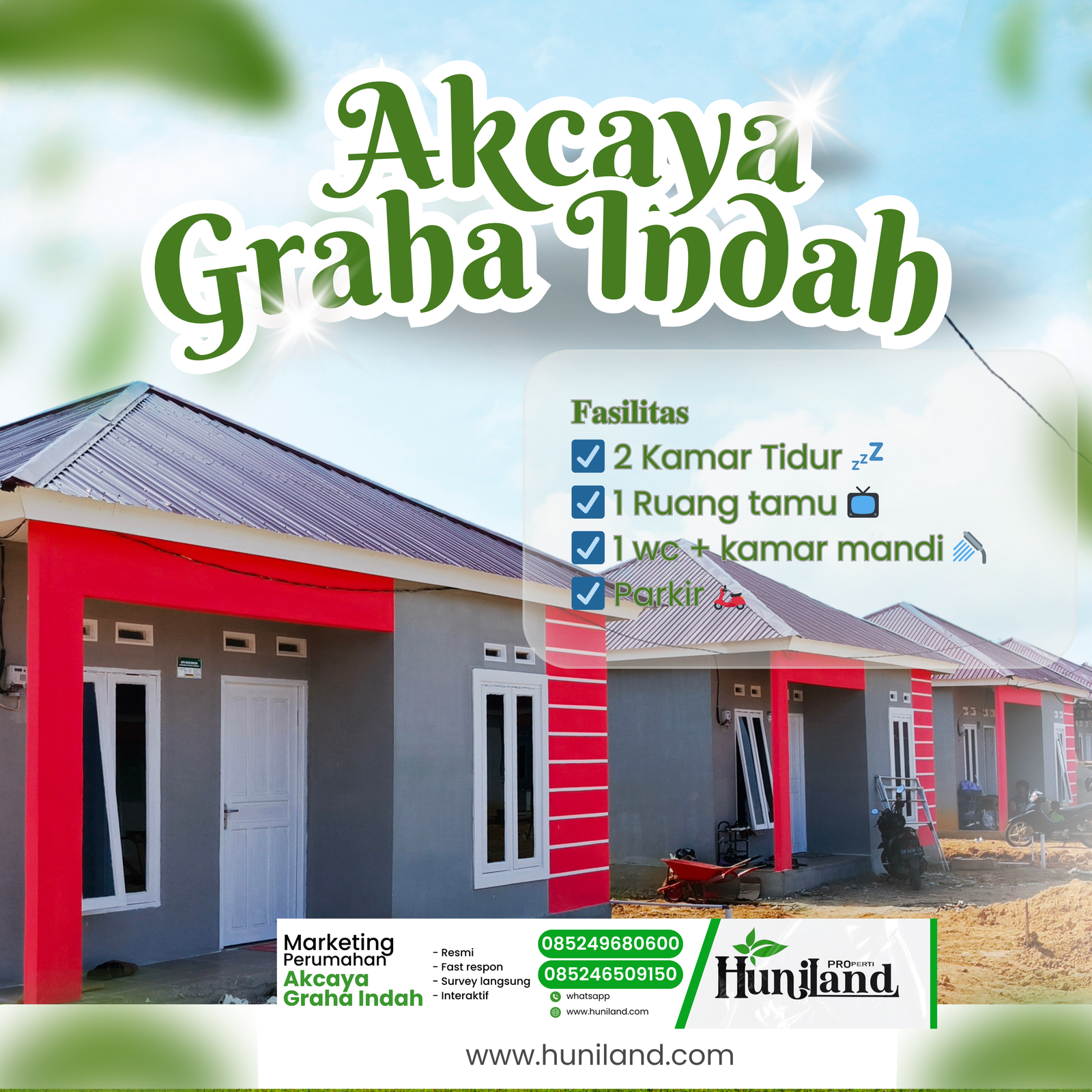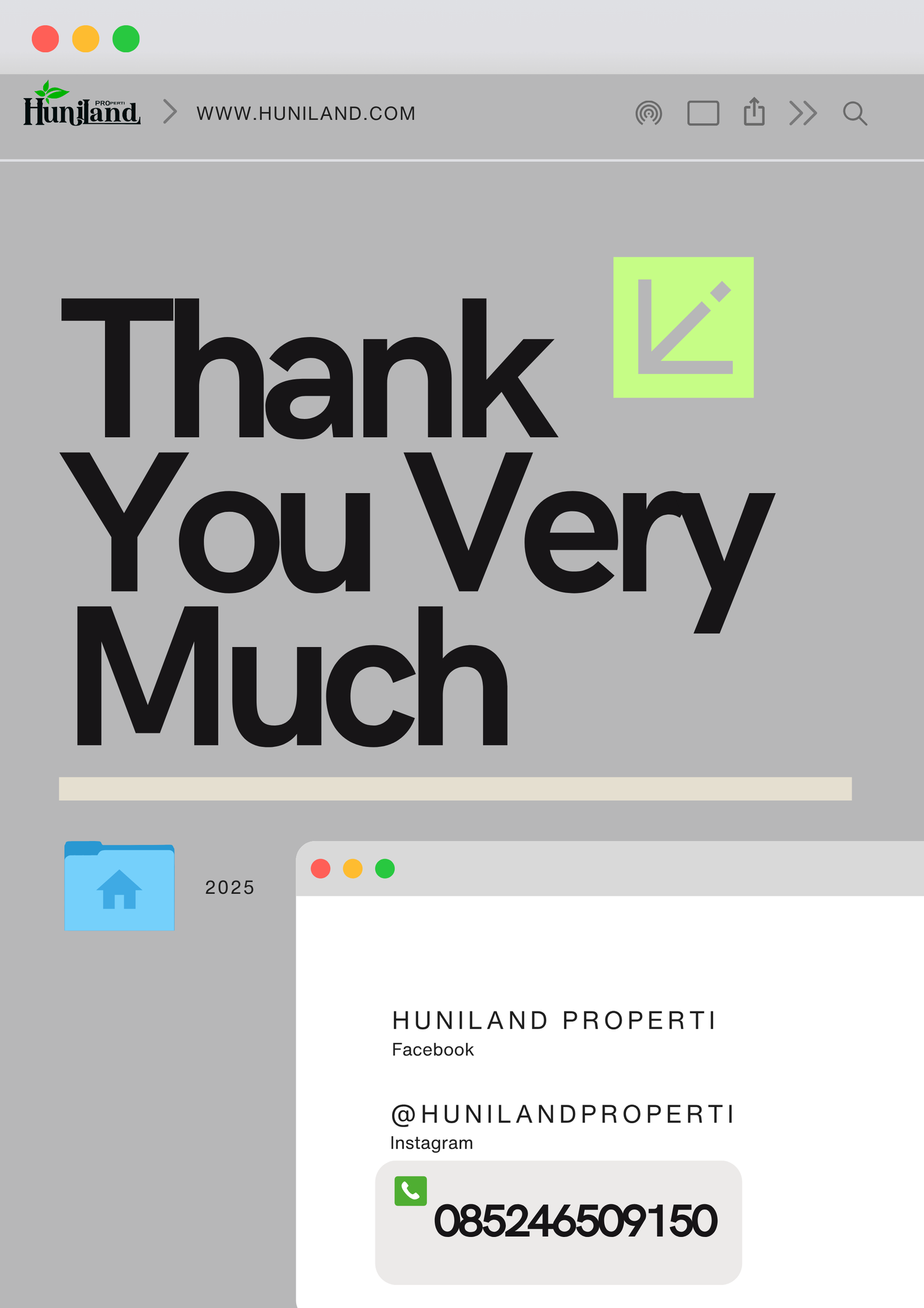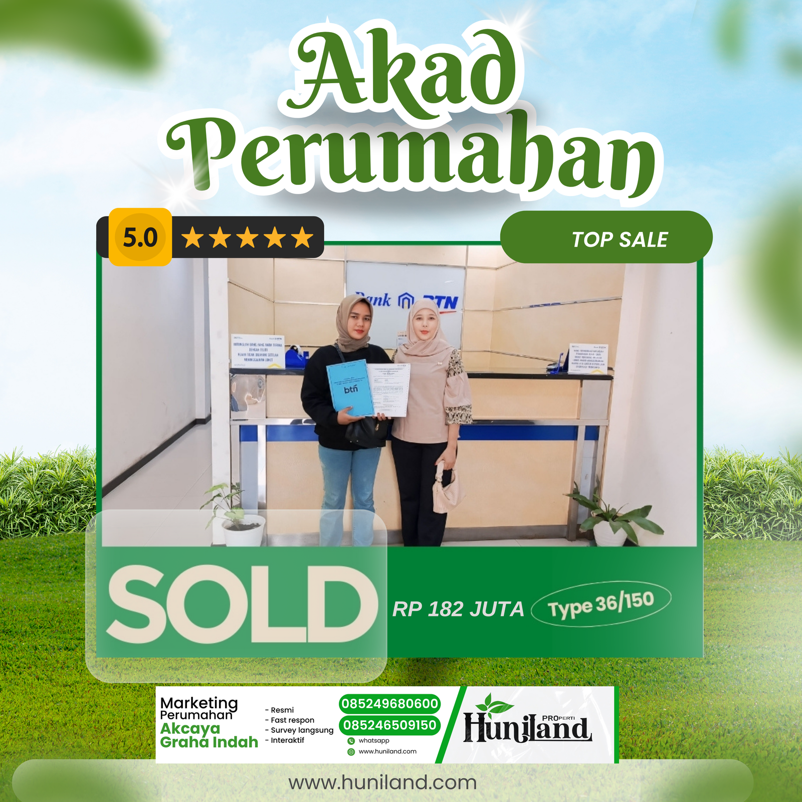 Huniland Properti memahami arti rumah dan kavling yang berkualitas. Kami menawarkan properti dengan cermat dan lokasi yang strategis, menjadi investasi berharga untuk masa depan Anda, menawarkan pelayanan terbaik kepada Anda. Kemitraan kami bukan hanya tentang menjual properti “ini tentang memberikan pengalaman dan Kwalitas tanpa kompromi”..,