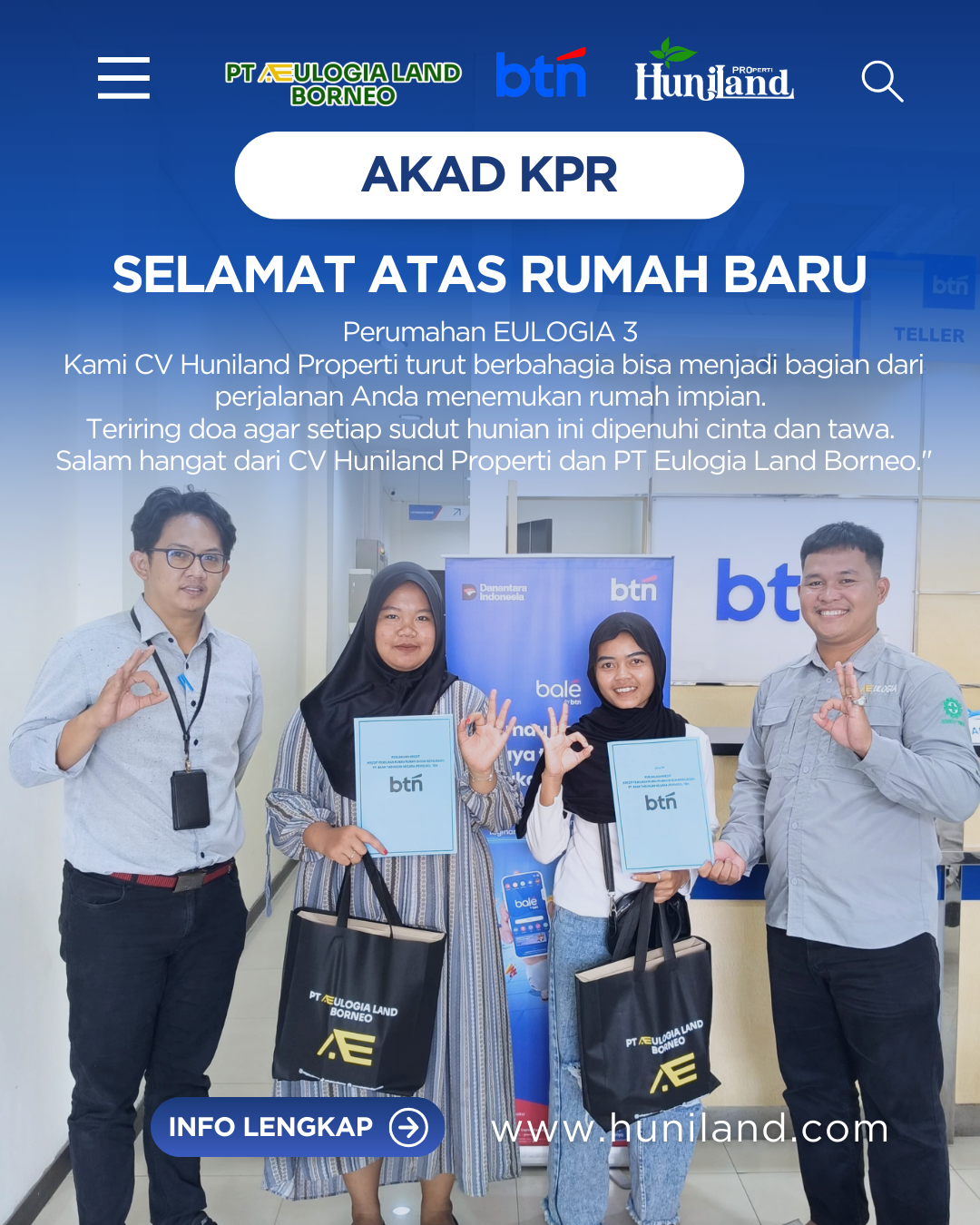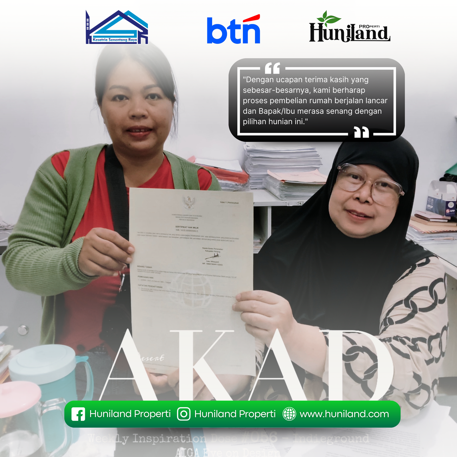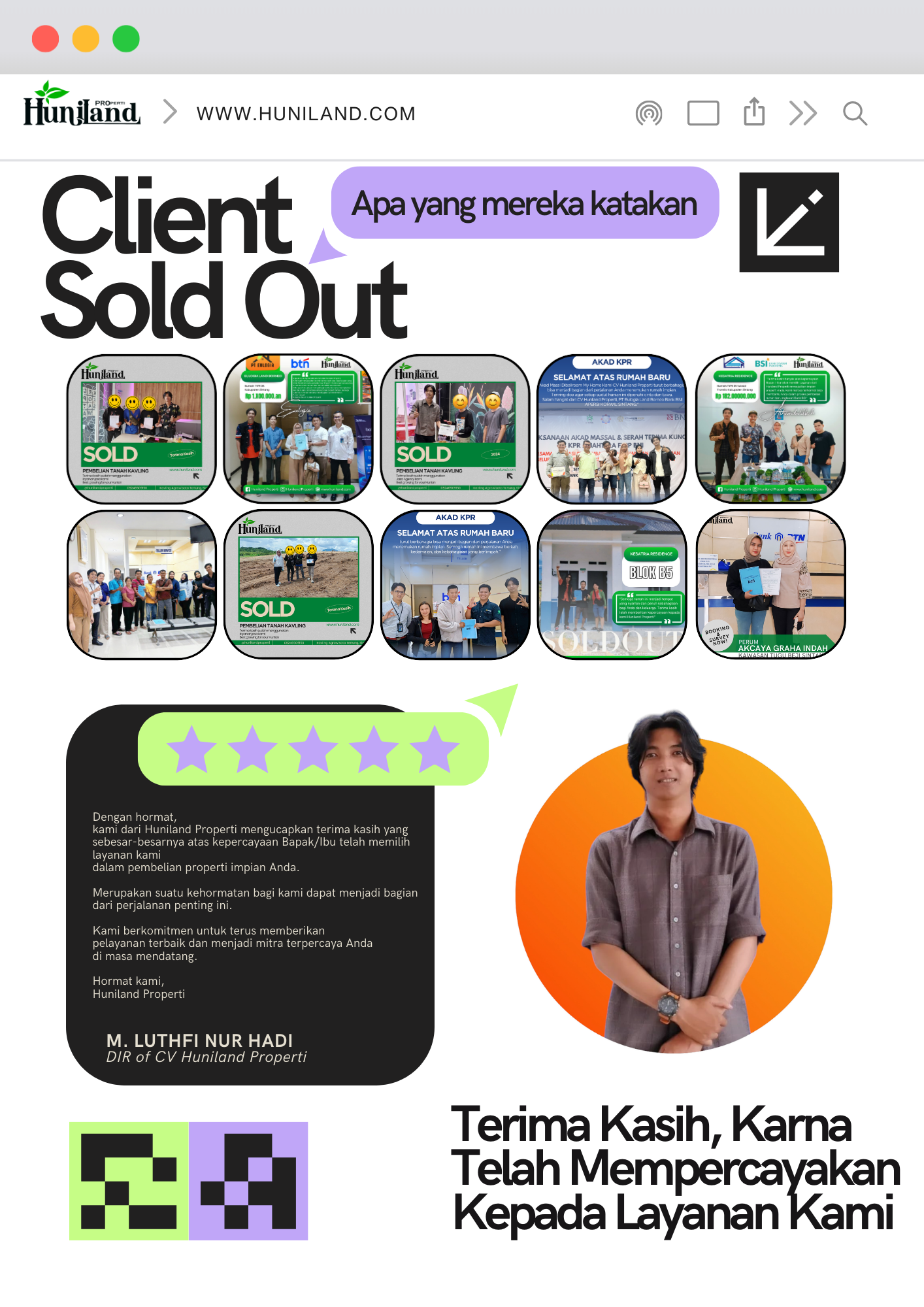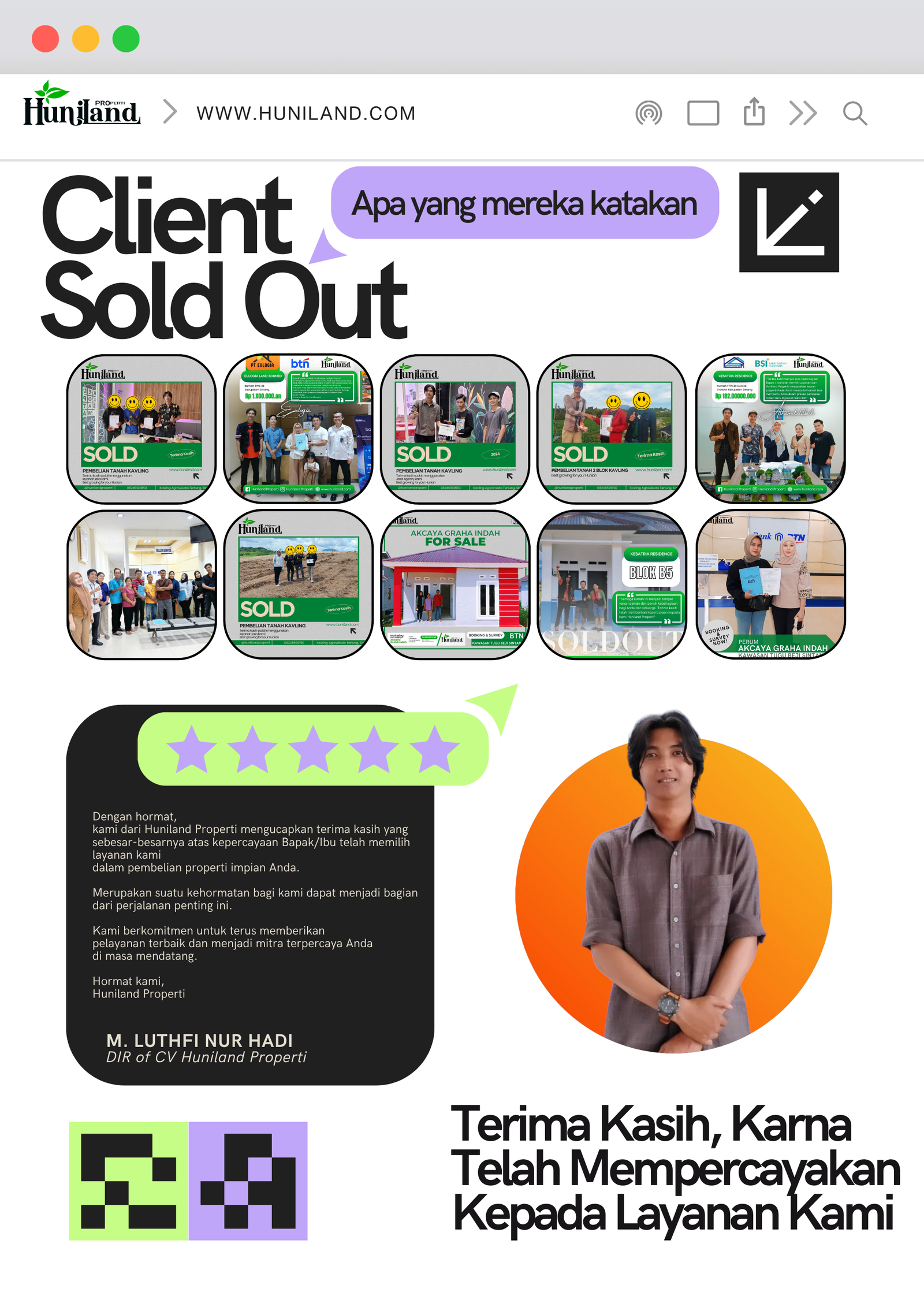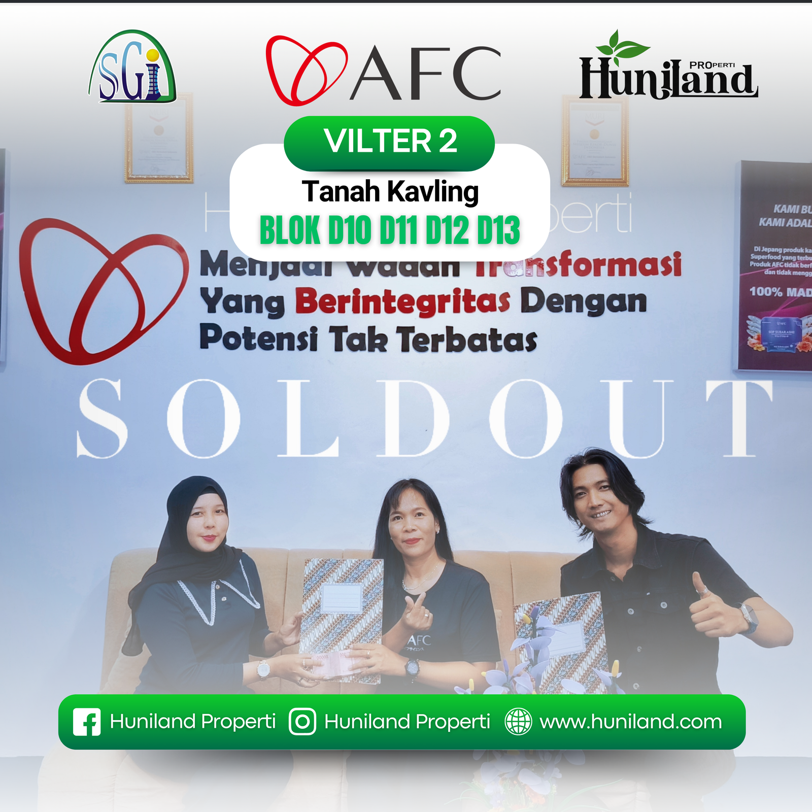 Huniland Properti memahami arti rumah dan kavling yang berkualitas. Kami menawarkan properti dengan cermat dan lokasi yang strategis, menjadi investasi berharga untuk masa depan Anda, menawarkan pelayanan terbaik kepada Anda. Kemitraan kami bukan hanya tentang menjual properti “ini tentang memberikan pengalaman dan Kwalitas tanpa kompromi”..,