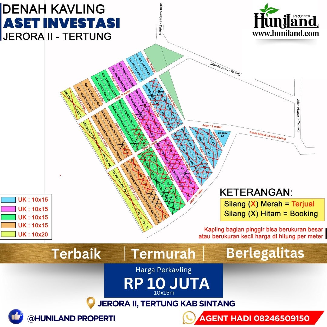 Huniland Properti JUAL Tanah kavling 10 x 15 (150m²)